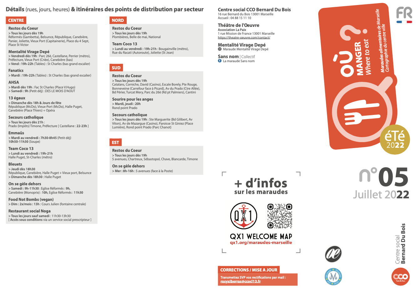 Du 1 juillet 2022 au 31 juillet 2022 Maraudes alimentaires Marseille ACTIONS SOCIALES Marseille Partager sur Facebook Partager sur Twitter Partager par mail Retrouvez les jours, heures et itinéraires des associations et points de distribution alimentaires à Marseille Cliquez sur l'image pour l'agrandir